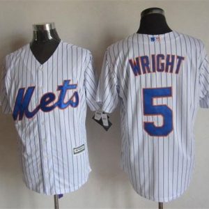 Mitchell And Ness Mets #5 David Wright White(Blue Strip) Throwback Stitched MLB Jersey