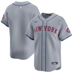 Men New York Mets Blank Grey 2024 Away Limited Stitched Baseball Jersey