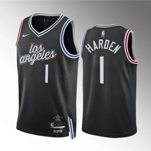 Men Los Angeles Clippers #1 James Harden Black 2022/23 City Edition Stitched Jersey