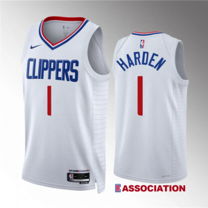 Men Los Angeles Clippers #1 James Harden White Association Edition Stitched Jersey