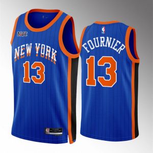 Men New Yok Knicks #13 Evan Fournier Blue 2023/24 City Edition Stitched Basketball Jersey