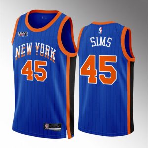 Men New Yok Knicks #45 Jericho Sims Blue 2023/24 City Edition Stitched Basketball Jersey