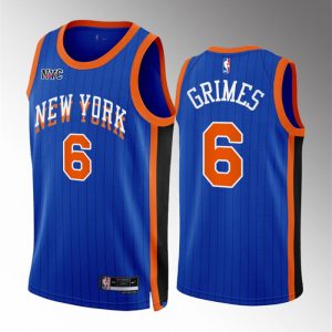 Men New Yok Knicks #6 Quentin Grimes Blue 2023/24 City Edition Stitched Basketball Jersey