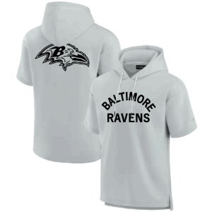 Men Baltimore Ravens Gray Super Soft Fleece Short Sleeve Hoodie