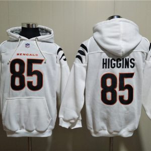 Men Cincinnati Bengals #85 Tee Higgins White Pullover Hoodie