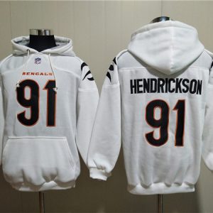 Men Cincinnati Bengals #91 Trey Hendrickson White Pullover Hoodie
