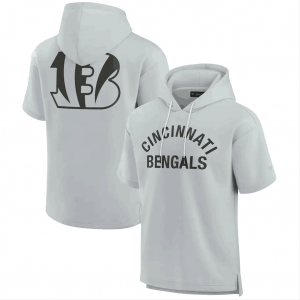 Men Cincinnati Bengals Gray Super Soft Fleece Short Sleeve Hoodie