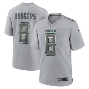 Men New York Jets #8 Aaron Rodgers Heather Gray Atmosphere Fashion Stitched Game