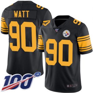 Nike Steelers #90 T. J. Watt Black Men Stitched NFL Limited Rush 100th Season Jersey