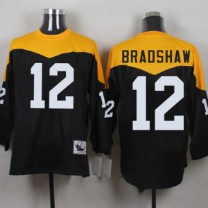 Mitchell And Ness 1967 Steelers #12 Terry Bradshaw Black/Yelllow Throwback Men Stitched NFL Jersey