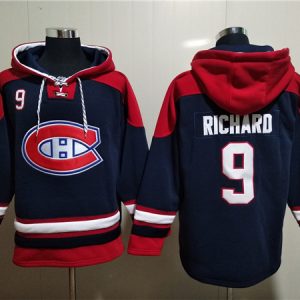 Men Montreal Canadiens #9 Maurice Richard Navy/Red Lace-Up Pullover Hoodie