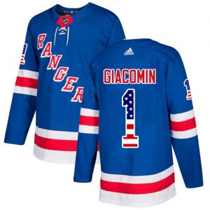 Adidas Rangers #1 Eddie Giacomin Royal Blue Home Authentic USA Flag Stitched NHL Jersey