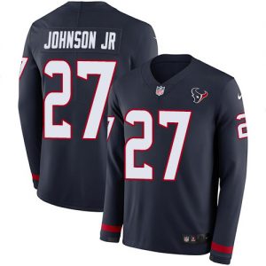 Nike Texans #27 Duke Johnson Jr Navy Blue Team Color Youth Stitched NFL Limited Therma Long Sleeve Jersey