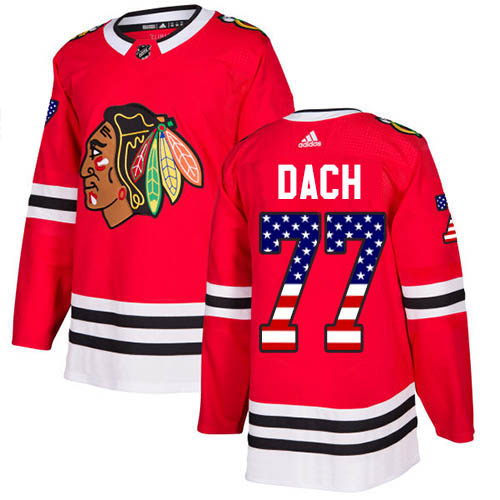 Adidas Blackhawks #77 Kirby Dach Red Home Authentic USA Flag Stitched NHL Jersey