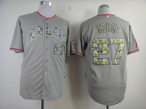 Angels of Anaheim #27 Mike Trout Grey USMC Cool Base Stitched MLB Jersey