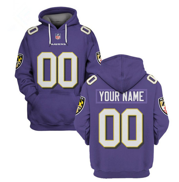 Baltimore Ravens Customized Purple Pullover Hoodie
