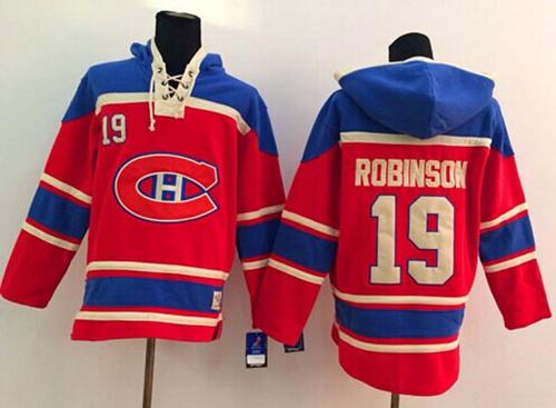 Canadiens #19 Larry Robinson Red Sawyer Hooded Sweatshirt Stitched NHL Jersey