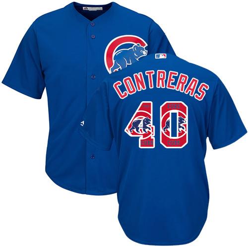 Cubs #40 Willson Contreras Blue Team Logo Fashion Stitched MLB Jersey