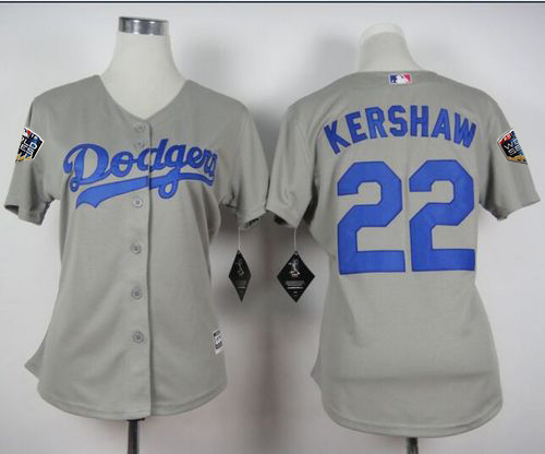 Dodgers #22 Clayton Kershaw Grey Alternate Road 2018 World Series Women Stitched MLB Jersey