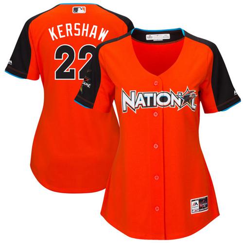 Dodgers #22 Clayton Kershaw Orange 2017 All-Star National League Women Stitched MLB Jersey