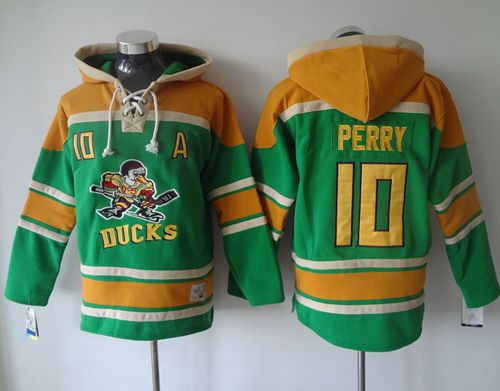 Ducks #10 Corey Perry Green Sawyer Hooded Sweatshirt Stitched NHL Jersey