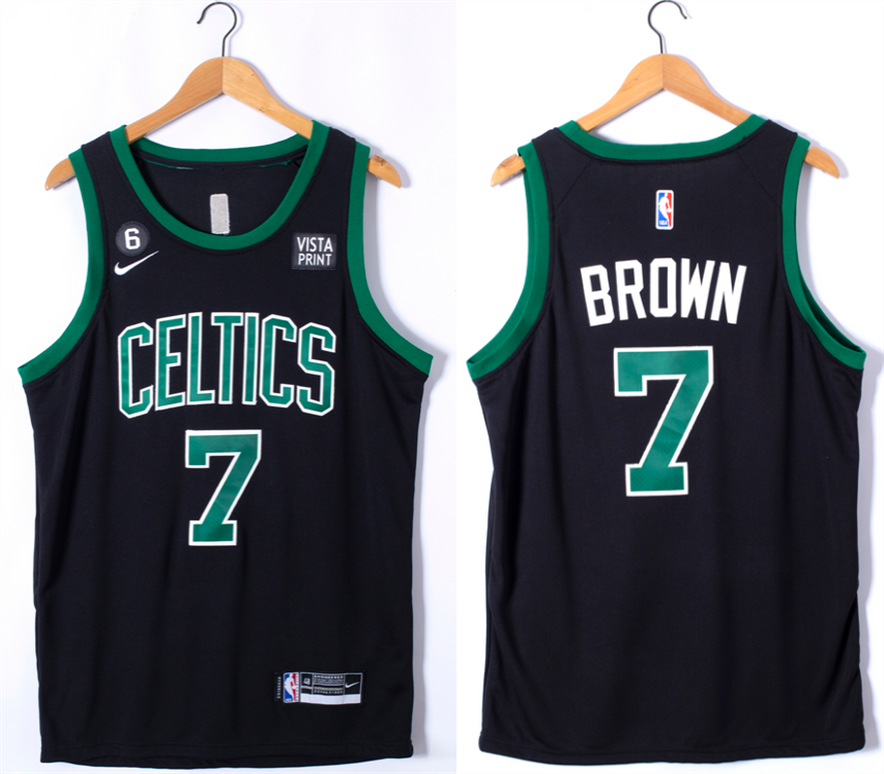 Men Boston Celtics #7 Jaylen Brown Black No.6 Patch Stitched Basketball Jersey