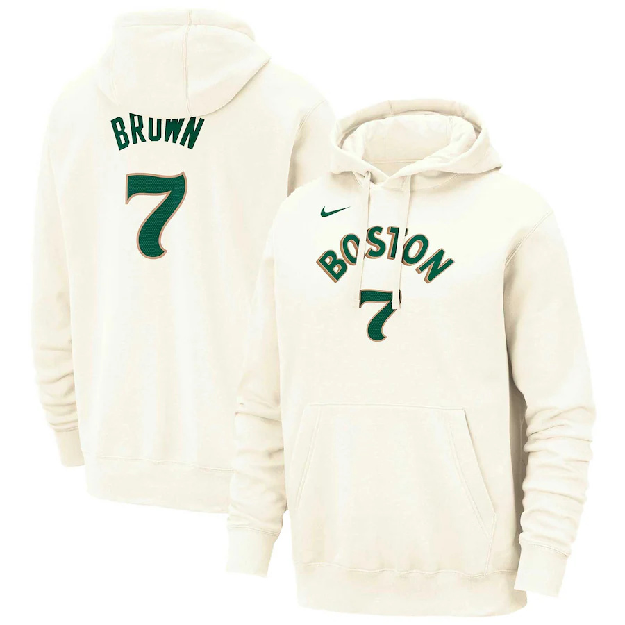 Men Boston Celtics #7 Jaylen Brown White 2023/24 City Edition Name & Number Pullover Hoodie