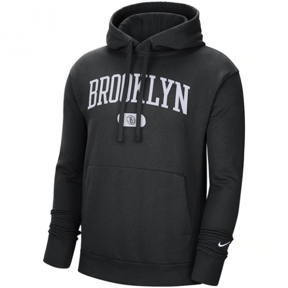 Men Brooklyn Nets 2021 Black City Edition Essential Logo Fleece Pullover Hoodie