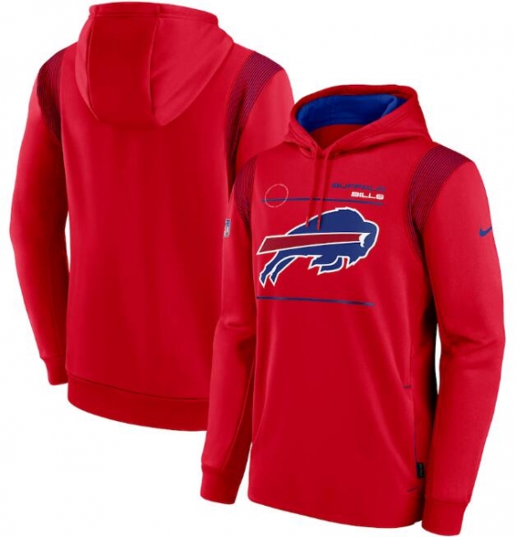 Men Buffalo Bills 2021 Red Sideline Logo Performance Pullover Hoodie