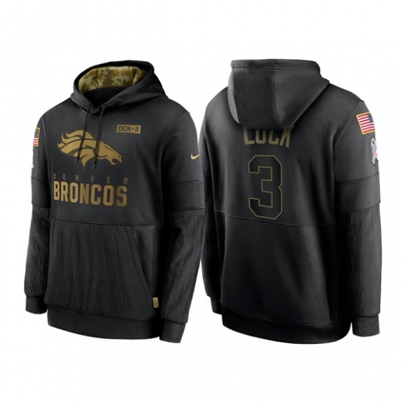 Men Denver Broncos #3 Drew Lock Black NFL 2020 Salute To Service Sideline Performance Pullover Hoodie