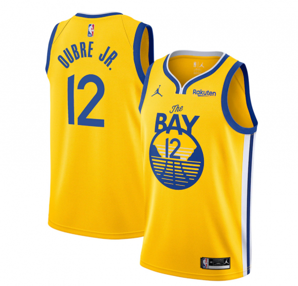 Men Golden State Warriors #12 Kelly Oubre Jr. Gold NBA 2020/21 Swingman Badge Edition Stitched Jersey