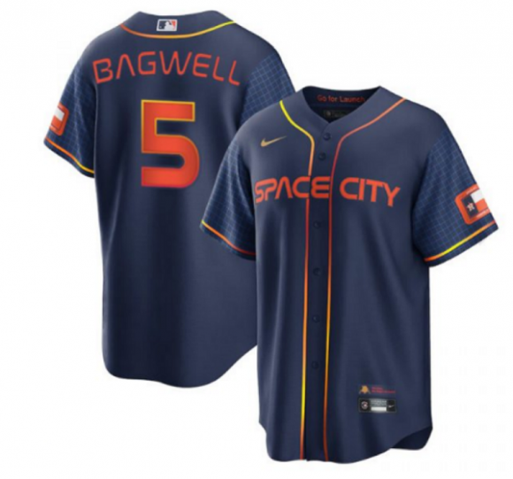 Men Houston Astros #5 Jeff Bagwell 2022 Navy City Connect Cool Base Stitched Jersey