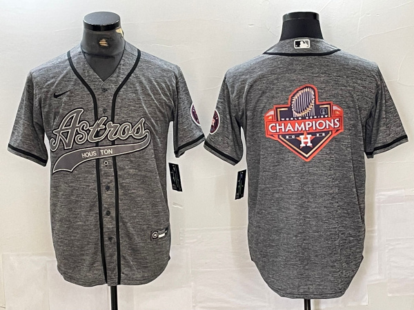 Men Houston Astros Grey Team Big Logo With Patch Cool Base Stitched Baseball Jersey