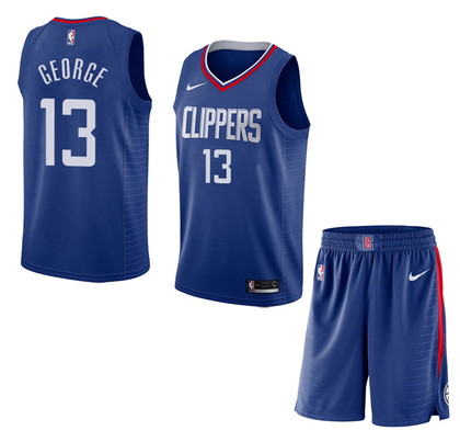 Men Los Angeles Clippers #13 Paul George Blue NBA Stitched Jersey(With Shorts)