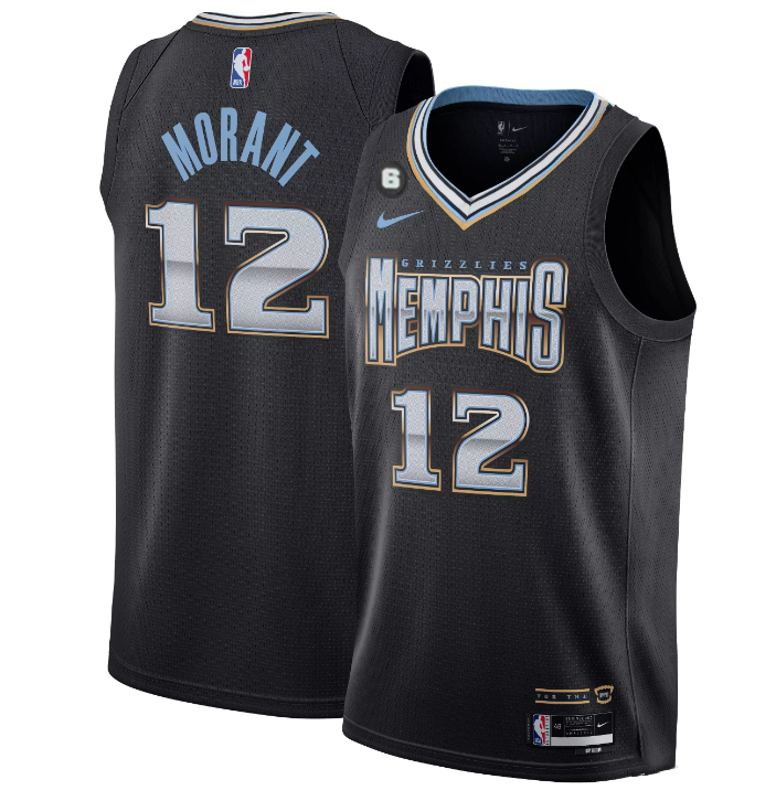 Men Memphis Grizzlies #12 Ja Morant Black 2022/23 City Edition With NO.6 Patch Stitched Basketball Jersey
