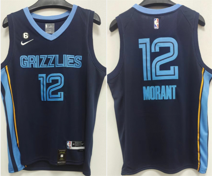 Men Memphis Grizzlies #12 Ja Morant Navy With NO.6 Patch Stitched Jersey