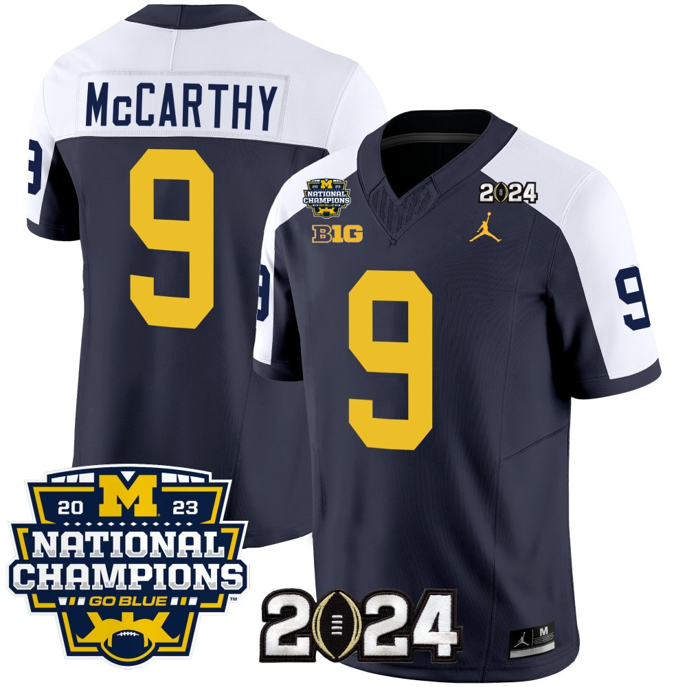 Men Michigan Wolverines #9 J.J. McCarthy Navy/White 2024 F.U.S.E. With 2023 National Champions Patch Stitched Jersey