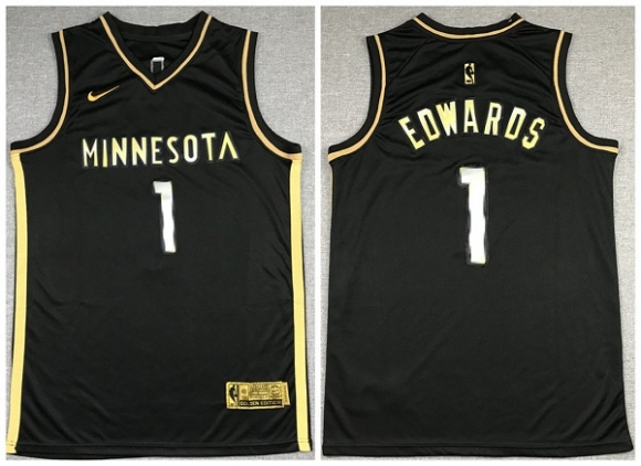 Men Minnesota Timberwolves #1 Anthony Edwards Black Gold 2021 Swingman Stitched Jersey