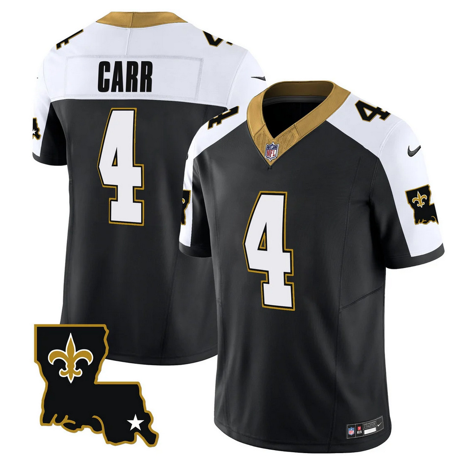 Men New Orleans Saints #4 Derek Carr Black White 2023 F.U.S.E. 1987 Legacy Vapor Stitched Jersey