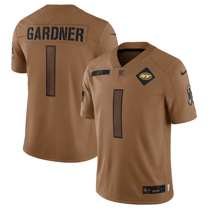 Men New York Jets #1 Ahmad Sauce 2023 Brown Salute To Service Limited Football Jersey