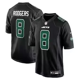 Men New York Jets #8 Aaron Rodgers Black Stitched Jersey