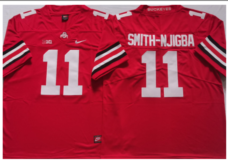 Men Ohio State Buckeyes #11 SMITH-NJIGBA Red Stitched Jersey