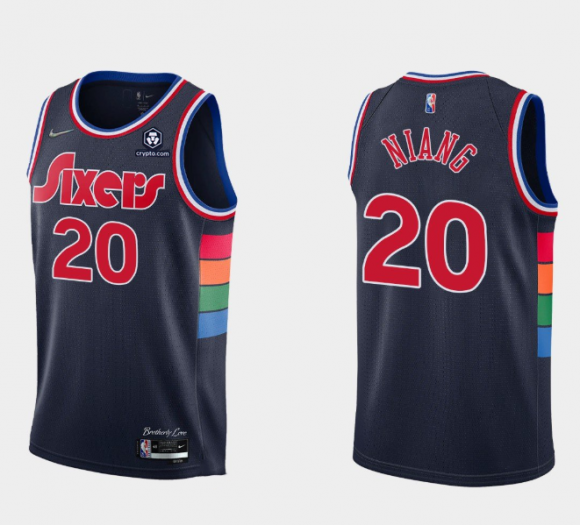 Men Philadelphia 76ers #20 Georges Niang Navy Icon Edition 75th Anniversary Stitched Swingman Jersey