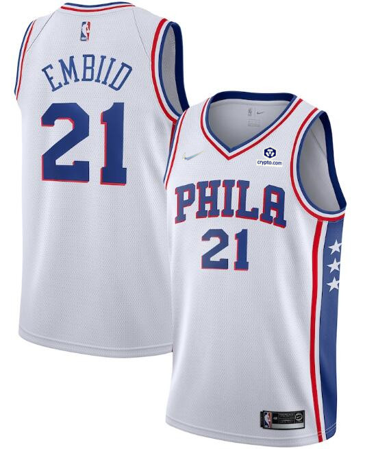 Men Philadelphia 76ers #21 Joel Embiid White 75th Anniversary Association Edition Swingman Stitched Jersey