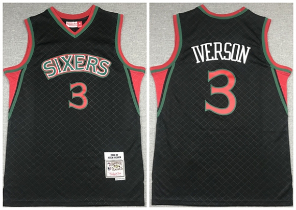 Men Philadelphia 76ers #3 Allen Iverson Black Throwback Stitched Jersey