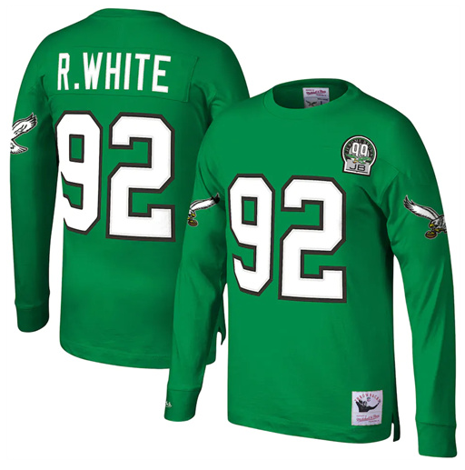 Men Philadelphia Eagles #92 Reggie White Kelly Green Mitchell & Ness Throwback Stitched Long Sleeve Jersey