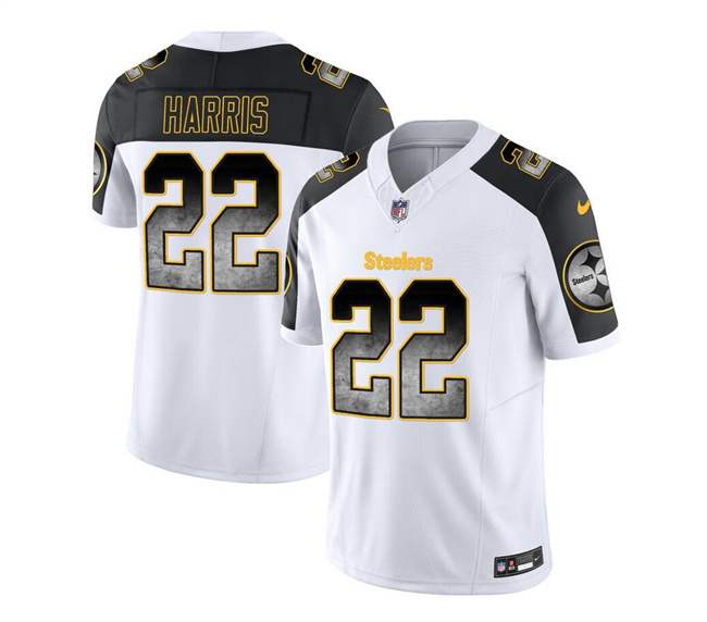 Men Pittsburgh Steelers #22 Najee Harris White/Black 2023 F.U.S.E. SmokeVapor Untouchable Limited Stitched Jersey