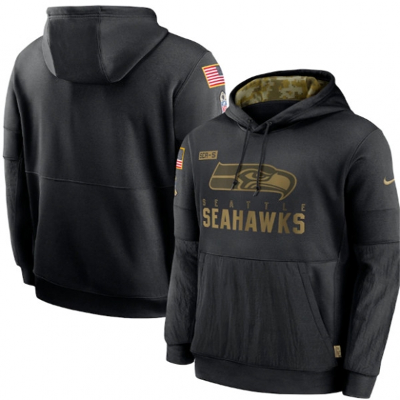Men Seattle Seahawks Black NFL 2020 Salute To Service Sideline Performance Pullover Hoodie
