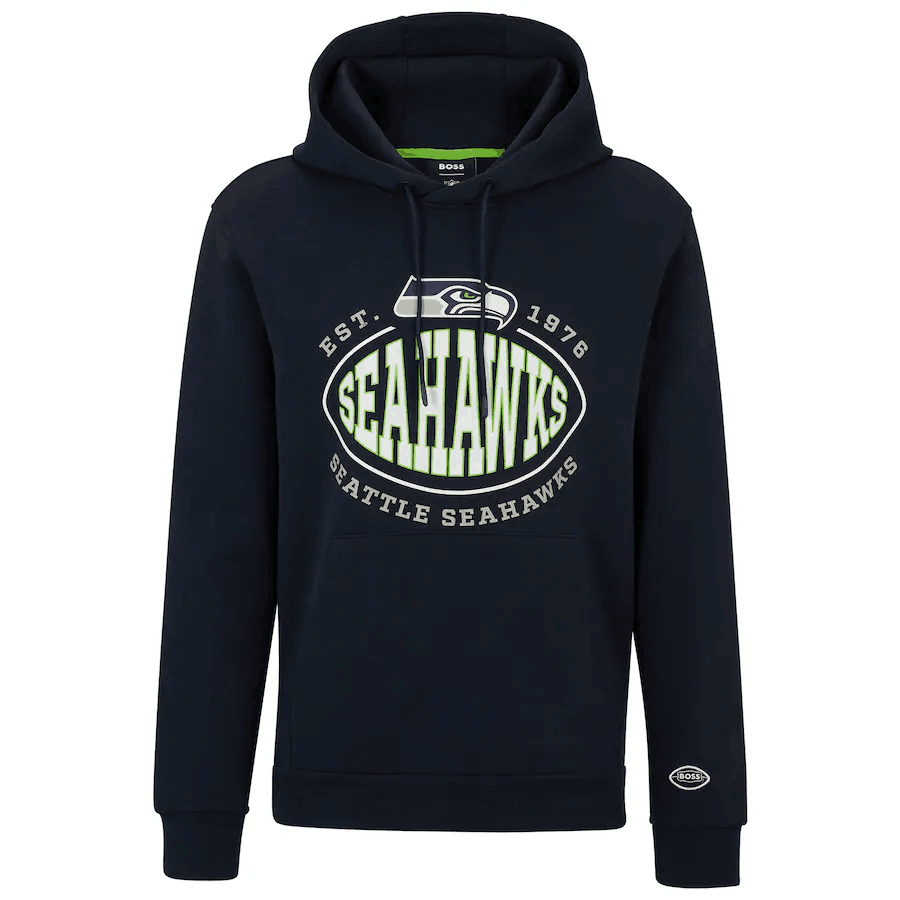 Men Seattle Seahawks Navy BOSS X Touchback Pullover Hoodie