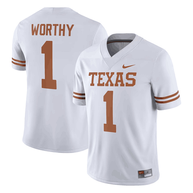 Men Texas Longhorns #1 Xavier Worthy White Stitched Jersey
